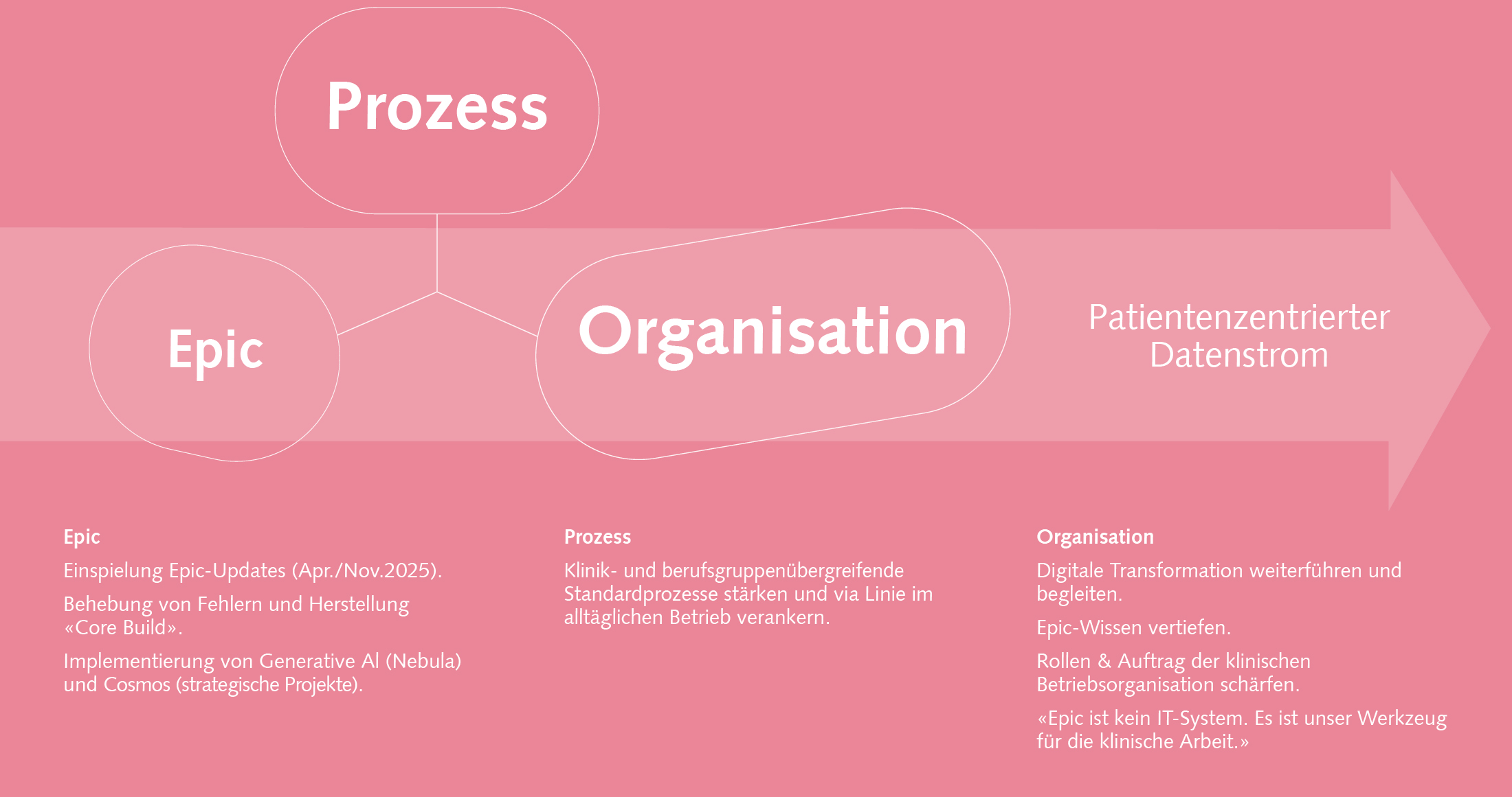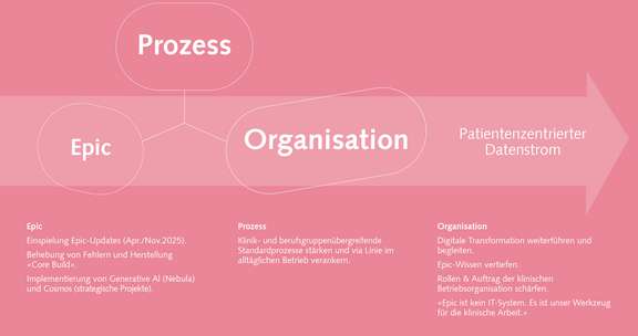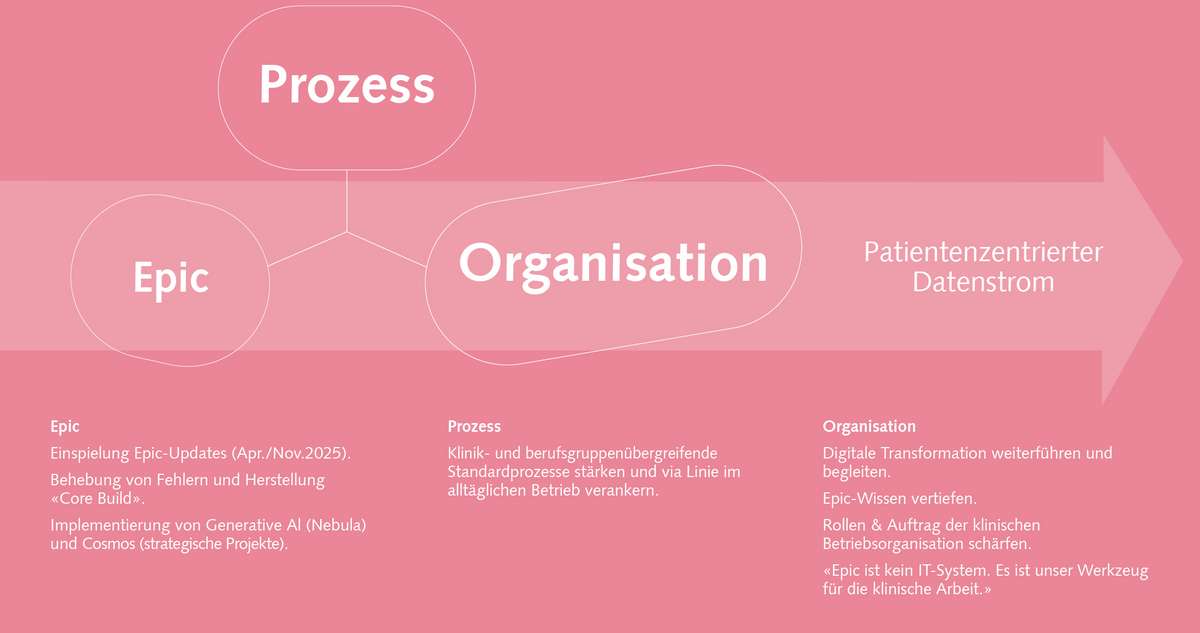 Gemäss der im Juni 2025 vom Verwaltungsrat verabschiedeten Strategie 2035 setzt die Insel Gruppe mit zwei von fünf Handlungsfeldern auf die Patientenorientierung und Medizin der Zukunft. Epic bildet die technische Grundlage und spielt darum eine zentrale Rolle.