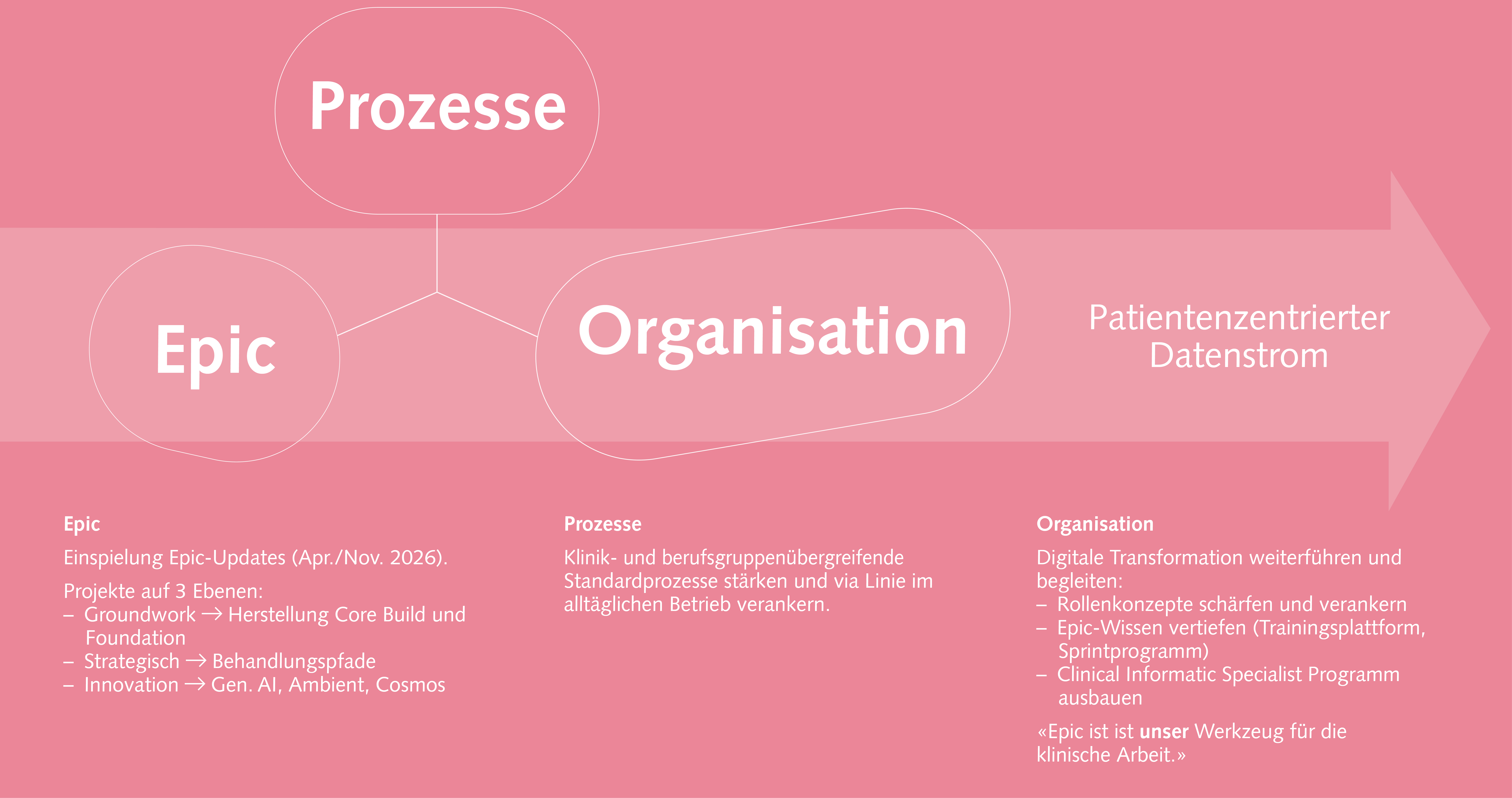 Gemäss der im Juni 2025 vom Verwaltungsrat verabschiedeten Strategie 2035 setzt die Insel Gruppe mit zwei von fünf Handlungsfeldern auf die Patientenorientierung und Medizin der Zukunft. Epic bildet die technische Grundlage und spielt darum eine zentrale Rolle.